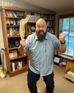 - Pastor Joe rocking his NewLife hat with the joke book, The Biblical Case for Progressive Christianity.