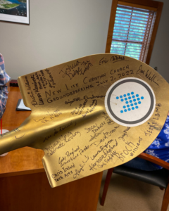 - The gold shovel gifted to Pastor Joe from the Highlands Campus site supervisor at the groundbreaking