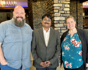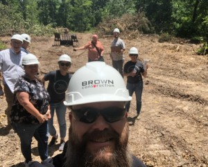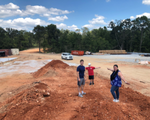Kirsten, Neil & Brock standing near where the front entrance of the building would be.