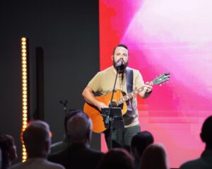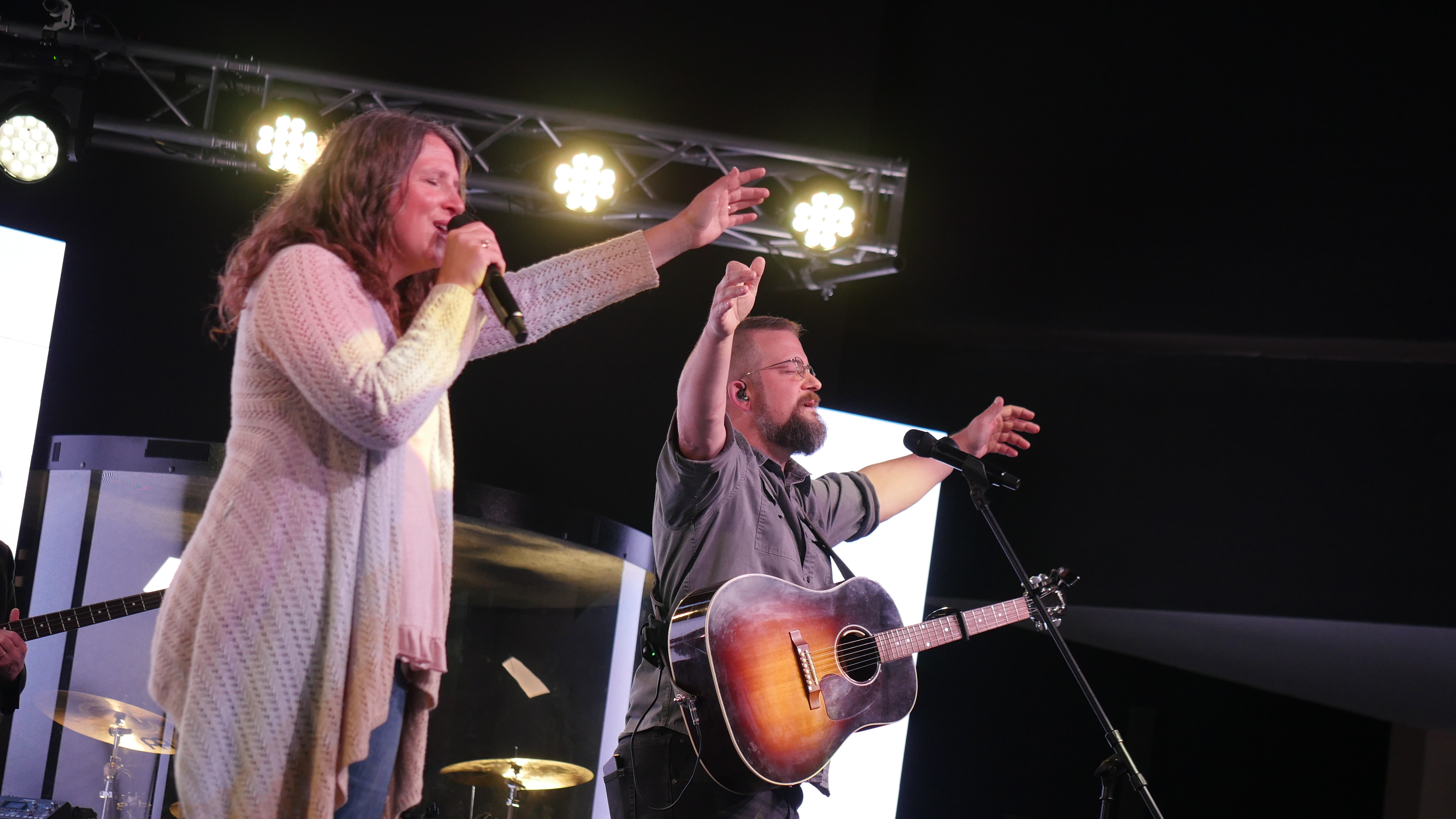 - Highlands Campus Worship Pastor, Kyle Couillard, leading worship.