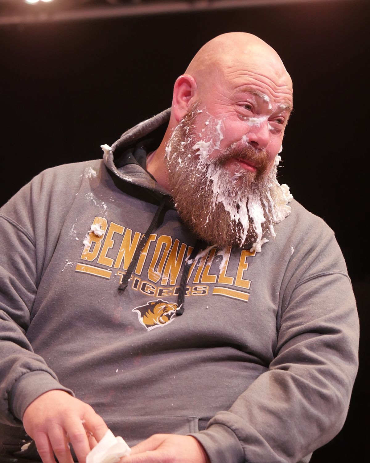 - Pastor Joe’s Reddi-wip beard at the Pasta and Pie Auction!