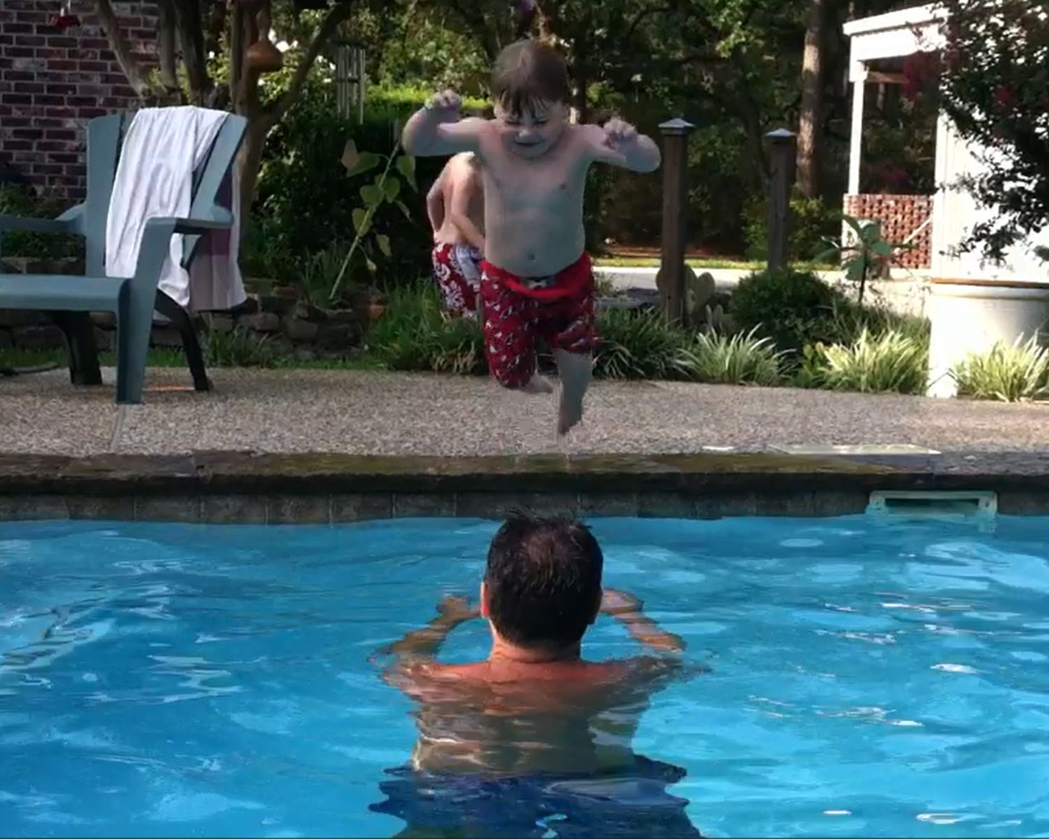 - Kirsten’s dad, Ken, aka ‘Papa’, teaching Brock to cannonball