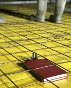 - The Bible is buried in the concrete foundation directly under the spot where the preaching podium will be.