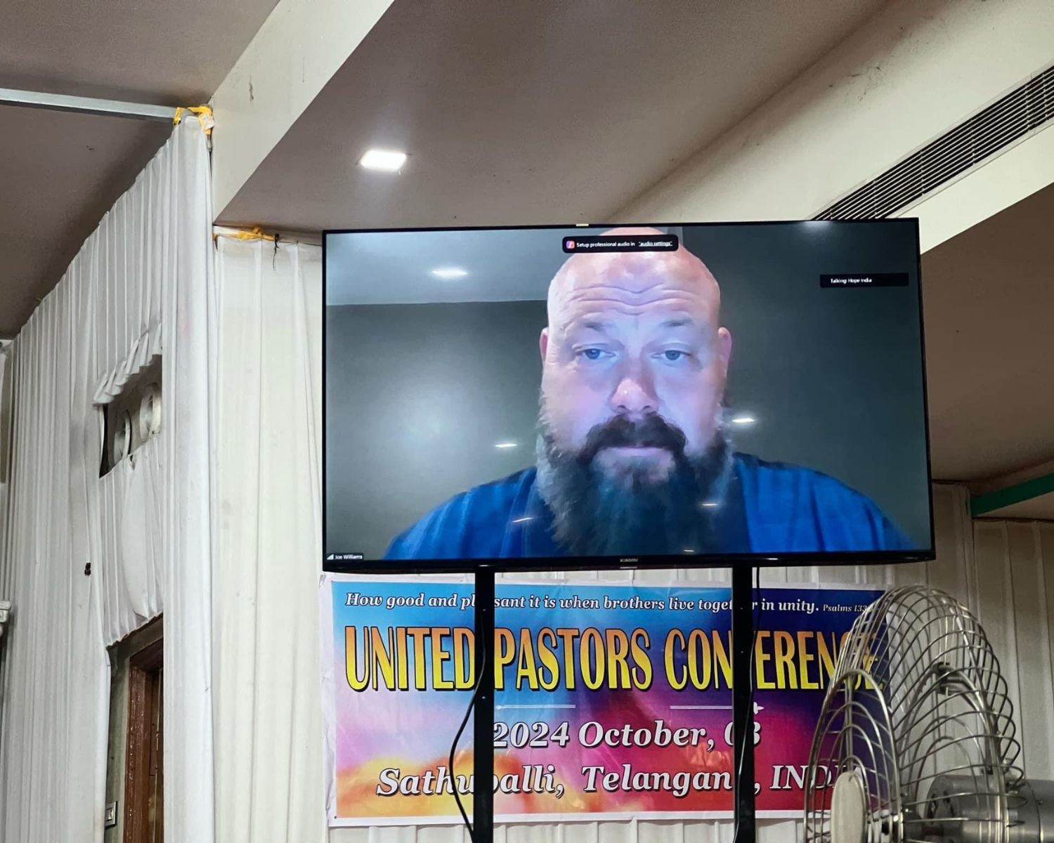 - Pastor Joe preaching via Zoom at a Pastor’s Conference in India